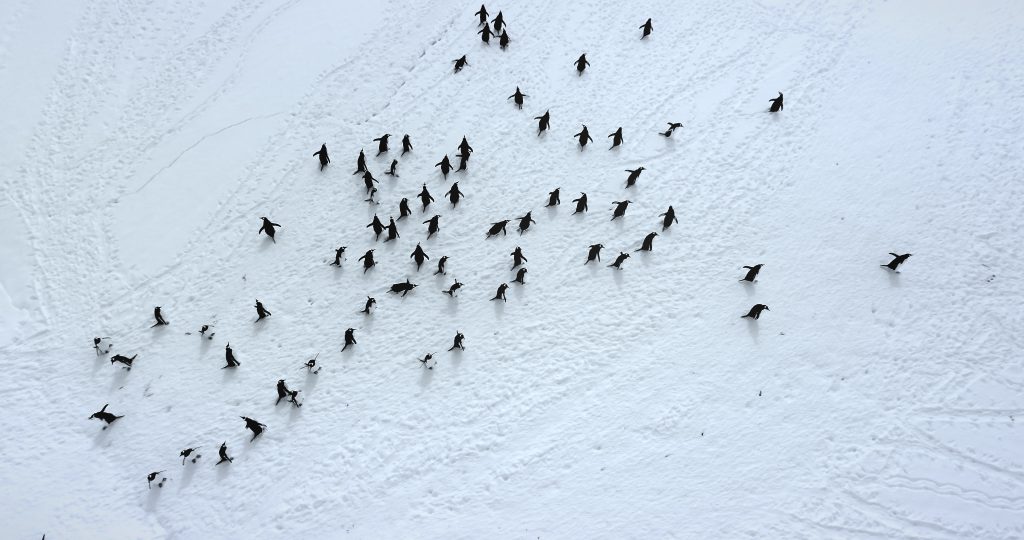 Biological impacts are already dramatic. Premature sea ice breakup in the central and eastern Bellingshausen Sea in 2022 caused nearly complete breeding failure in four of five monitored emperor penguin colonies. Satellite imagery showed the disappearance of guano stains a colony sign before chicks fledge.