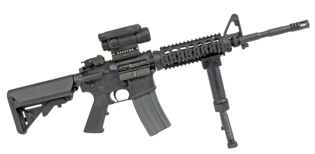 The M4 translated the M16 system into the compact age. With its 14.5-inch barrel, shorter gas system, and high parts commonality with the M16A2, it answered a problem that had grown more obvious as combat moved into vehicles, urban spaces, and tighter interior environments. A full-length rifle remained effective, but it was not always convenient.
